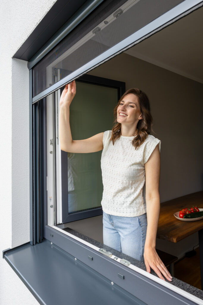 Son profil fin et discret s’intègre harmonieusement à la menuiserie. Grâce à un système de tension durable du tissu, il garantit une protection anti-insectes fiable, stable et esthétique, dans le temps.